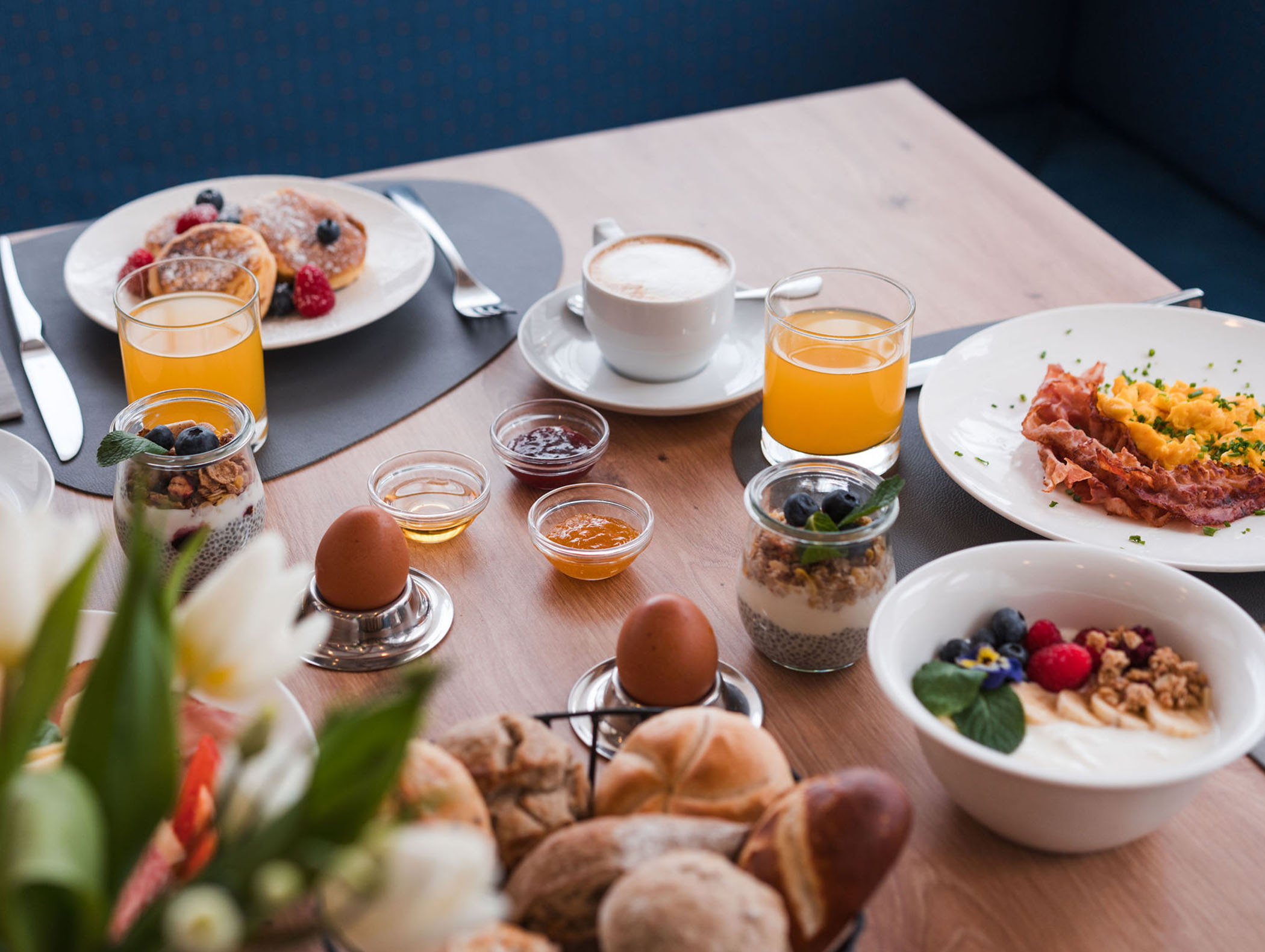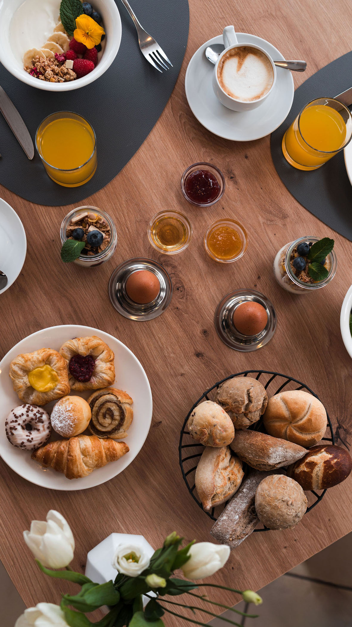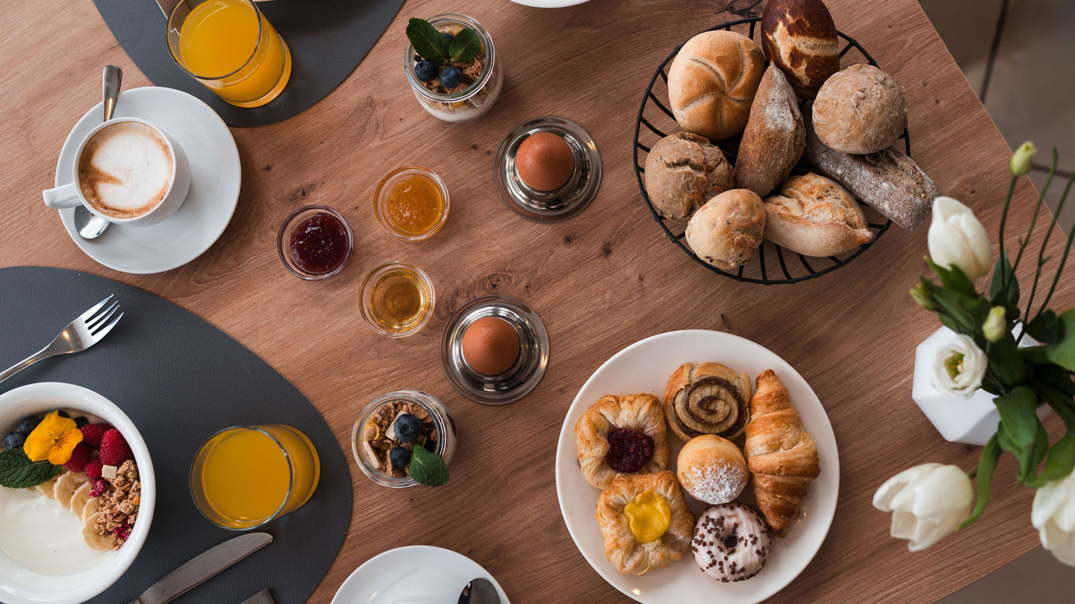 Morgens steht in unserem Bed&Breakfast am Kronplatz von 07:30 bis 09:30 Uhr ein schmackhaftes und reichhaltiges Frühstücksbuffet bereit.