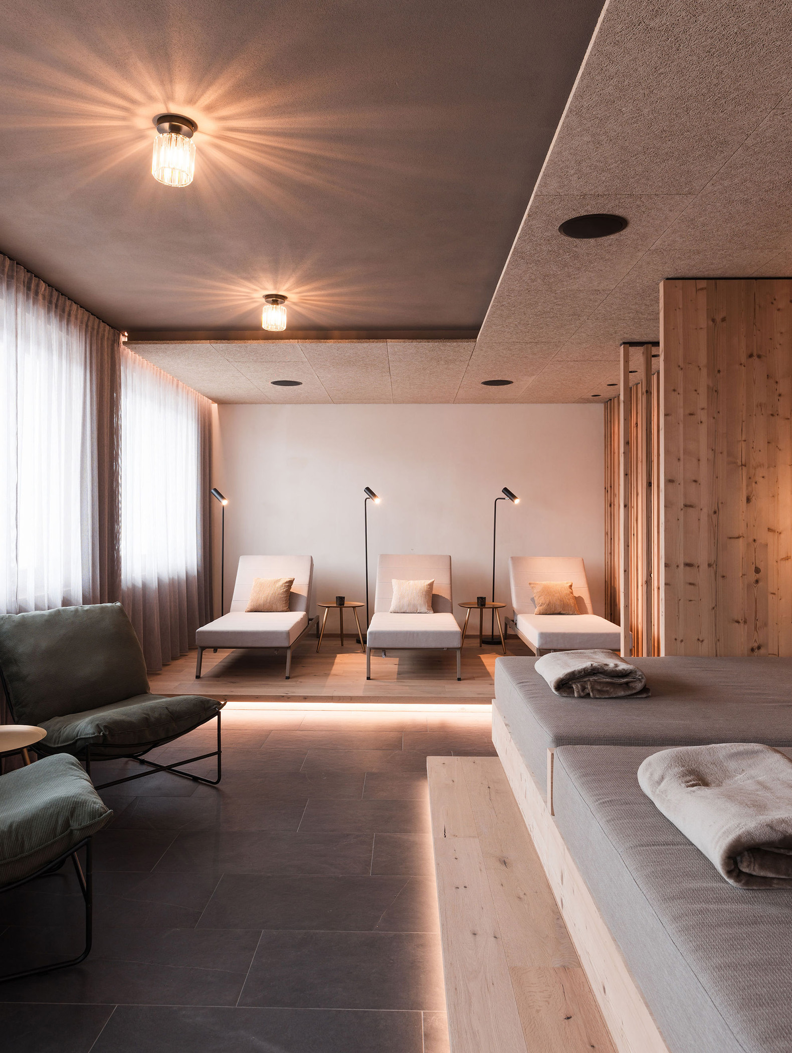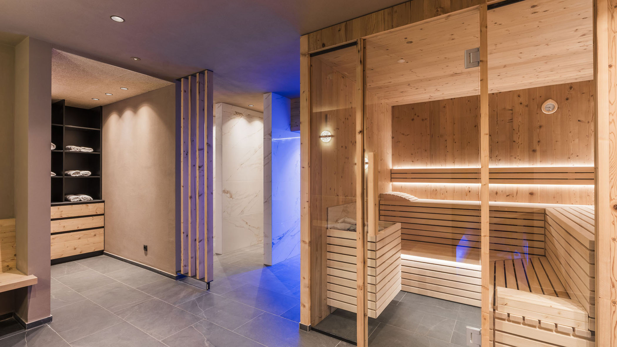 Im MyLiving in Stefansdorf erwartet Sie ein kleiner, aber feiner Wellnessbereich mit Sauna, Dampfbad und Entspannungsraum – eine gemütliche Oase der Ruhe, ideal zum Abschalten.