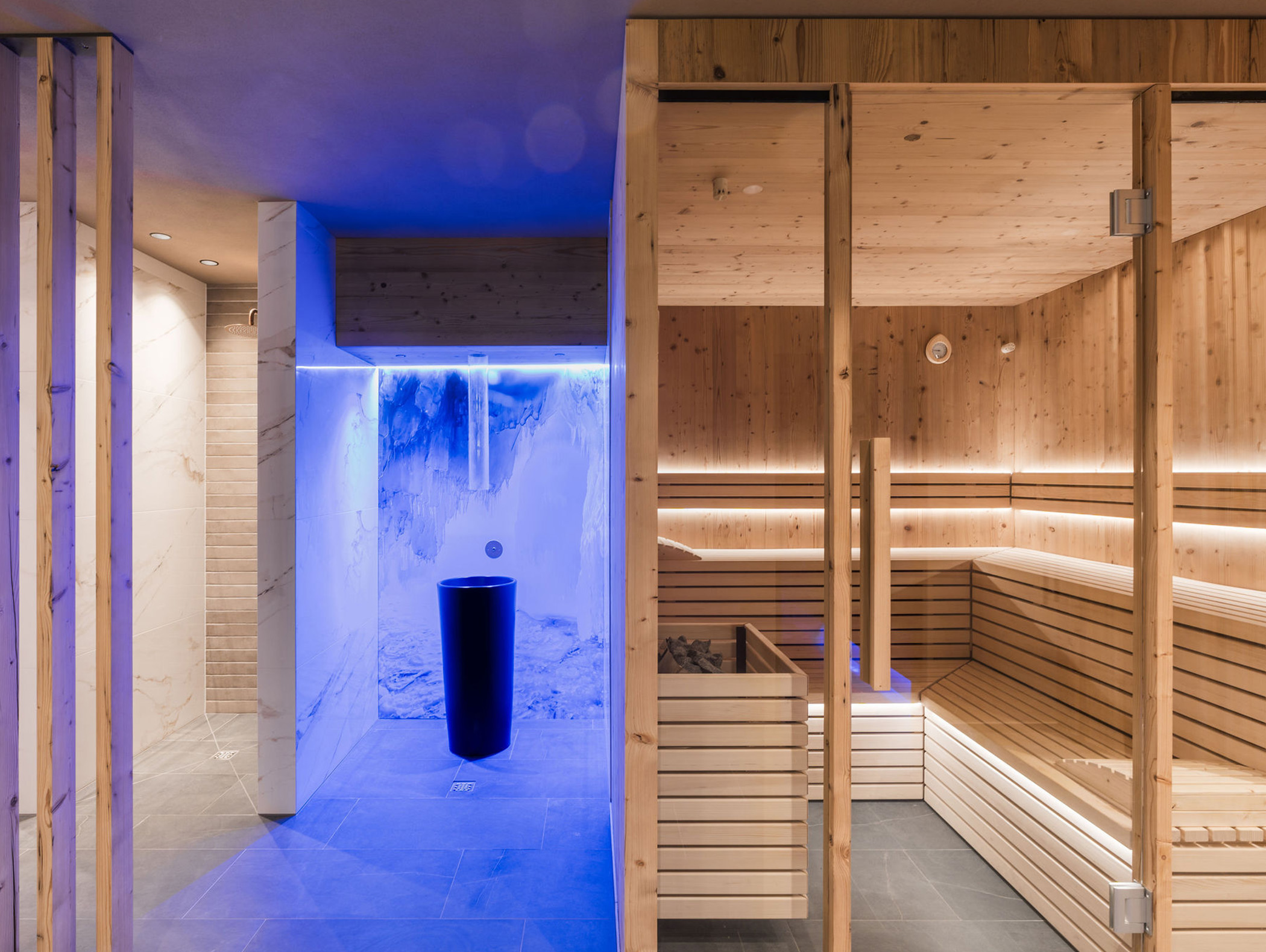 Für Ihre Erfrischung steht eine Tee-Ecke bereit, kostenlose Handtücher sind auch vorhanden. Unser Eisbrunnen sorgt zudem für eine prickelnde Abkühlung nach dem Saunagang.